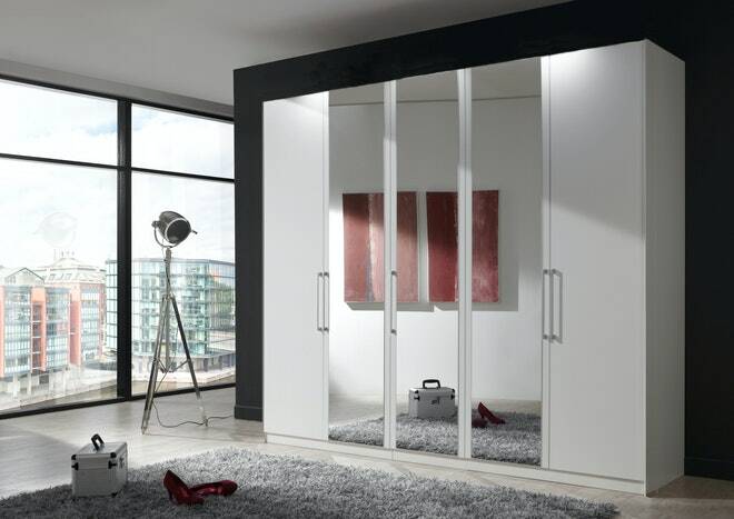 De vermelde prijs geldt voor een schuifdeurkast van 200 cm lang. met 4 schappen, 2 roedes in de kleur wit inclusief één spiegeldeur
